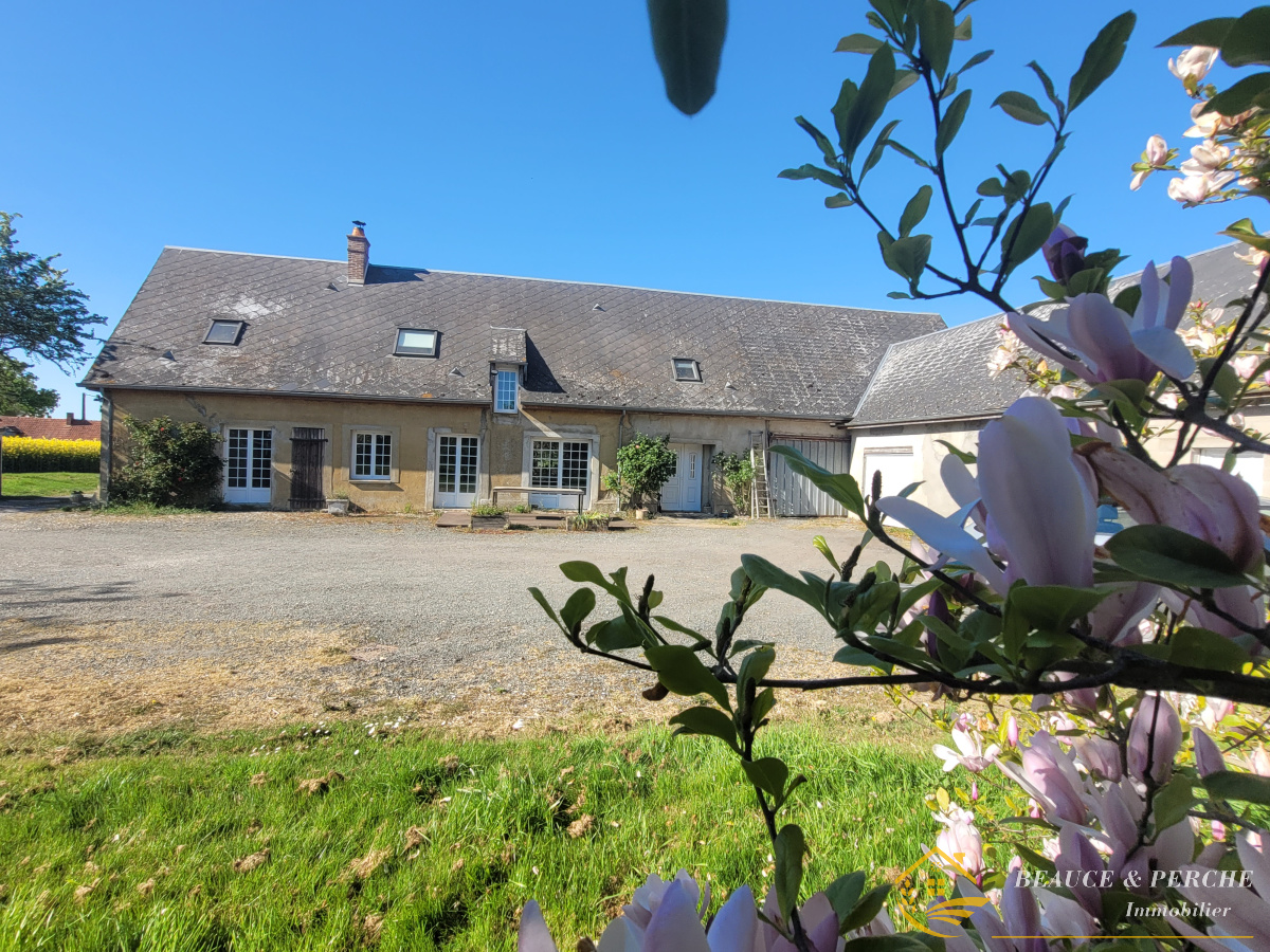 PROCHE ILLIERS-COMBRAY - SORTIE 3.1 DE L'A11. Située au bout d'un chemin, sans vis-à-vis et au calme. Longère rénovée avec goût, vous offrant, une entrée, un espace salle à manger avec cuisine aménagée et équipée, un salon avec poêle à bois, une suite parentale avec salle d'eau et partie dressing, un biuanderie et un WC. A l'étage, un dégagement desservant deux chambres, un bureau, une salle de bains et un WC. Sur l'extérieur 80 m² de dépendance, un garage et un terrain arboré de 2647m² avec mare. LE CALME, A 5 MINUTES D'ILLIERS COMBRAY !